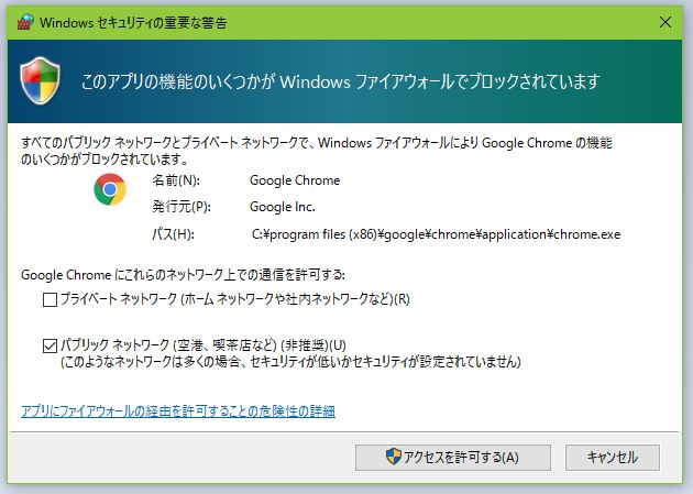 ↑こんなのが出てくるけど2つともチェックして許可する。